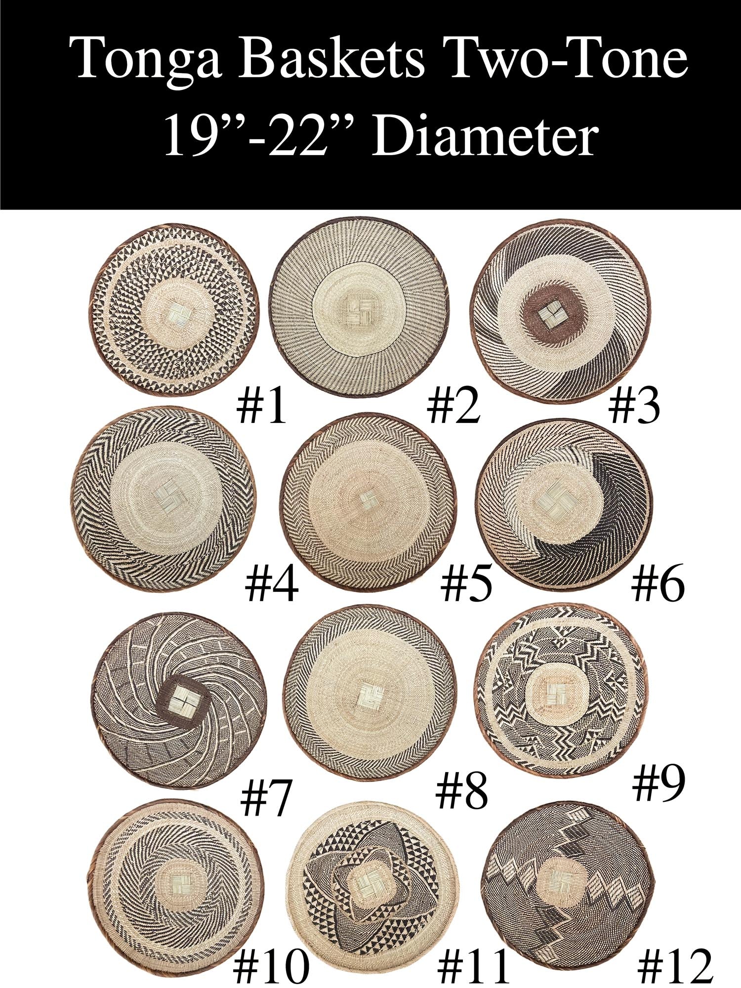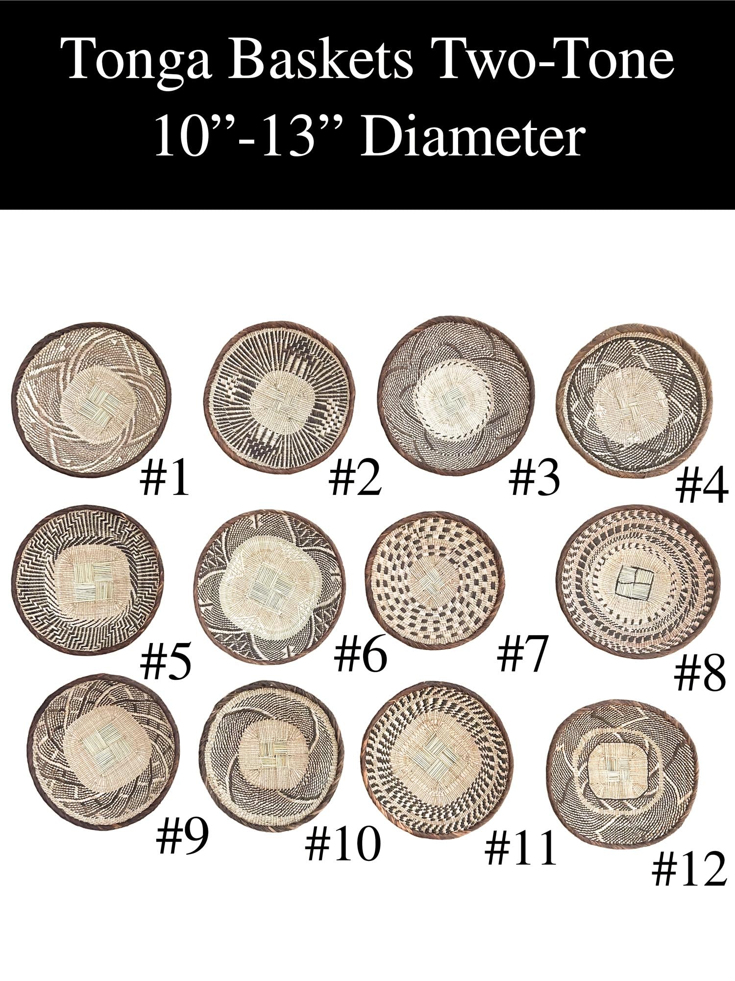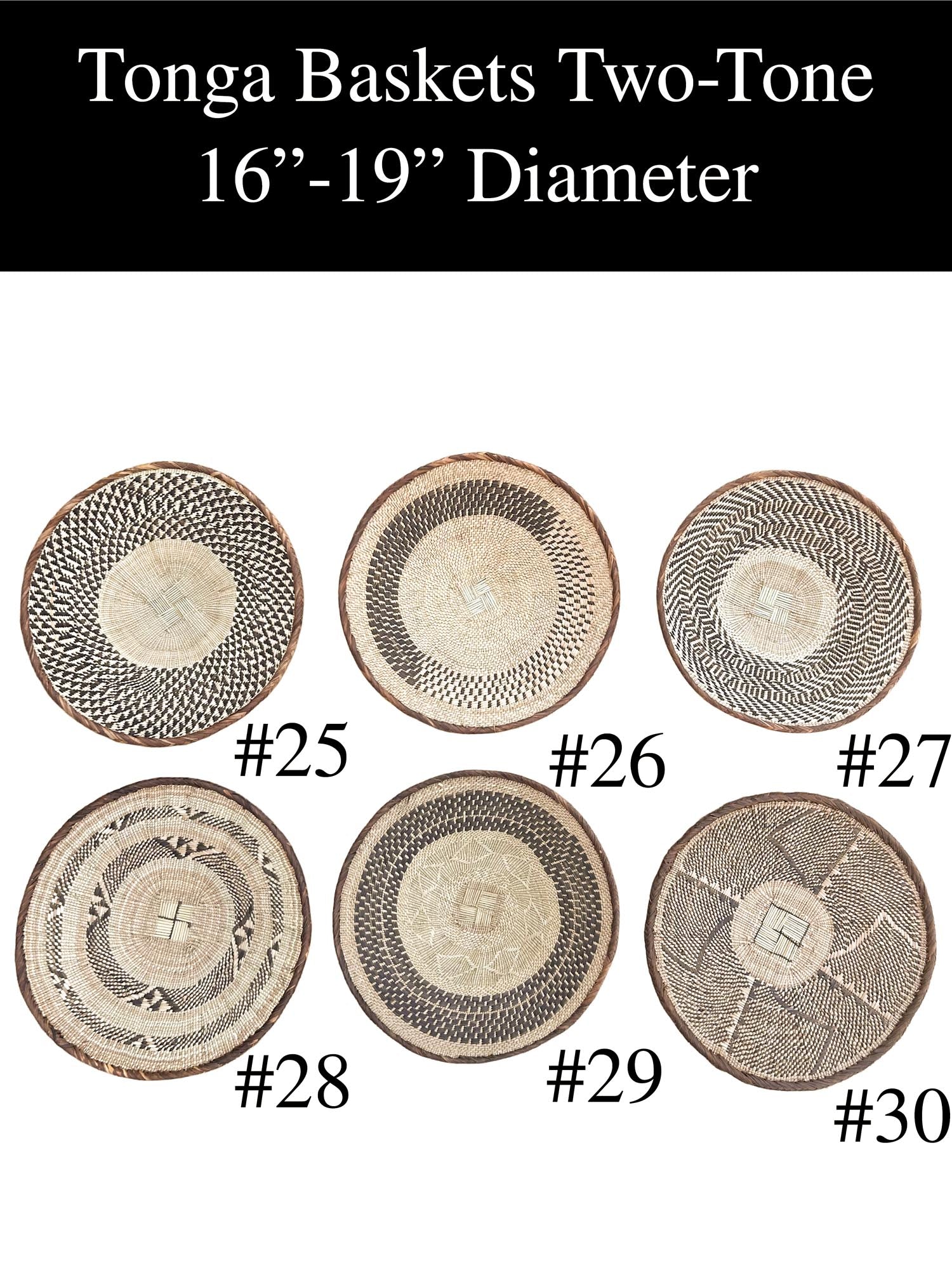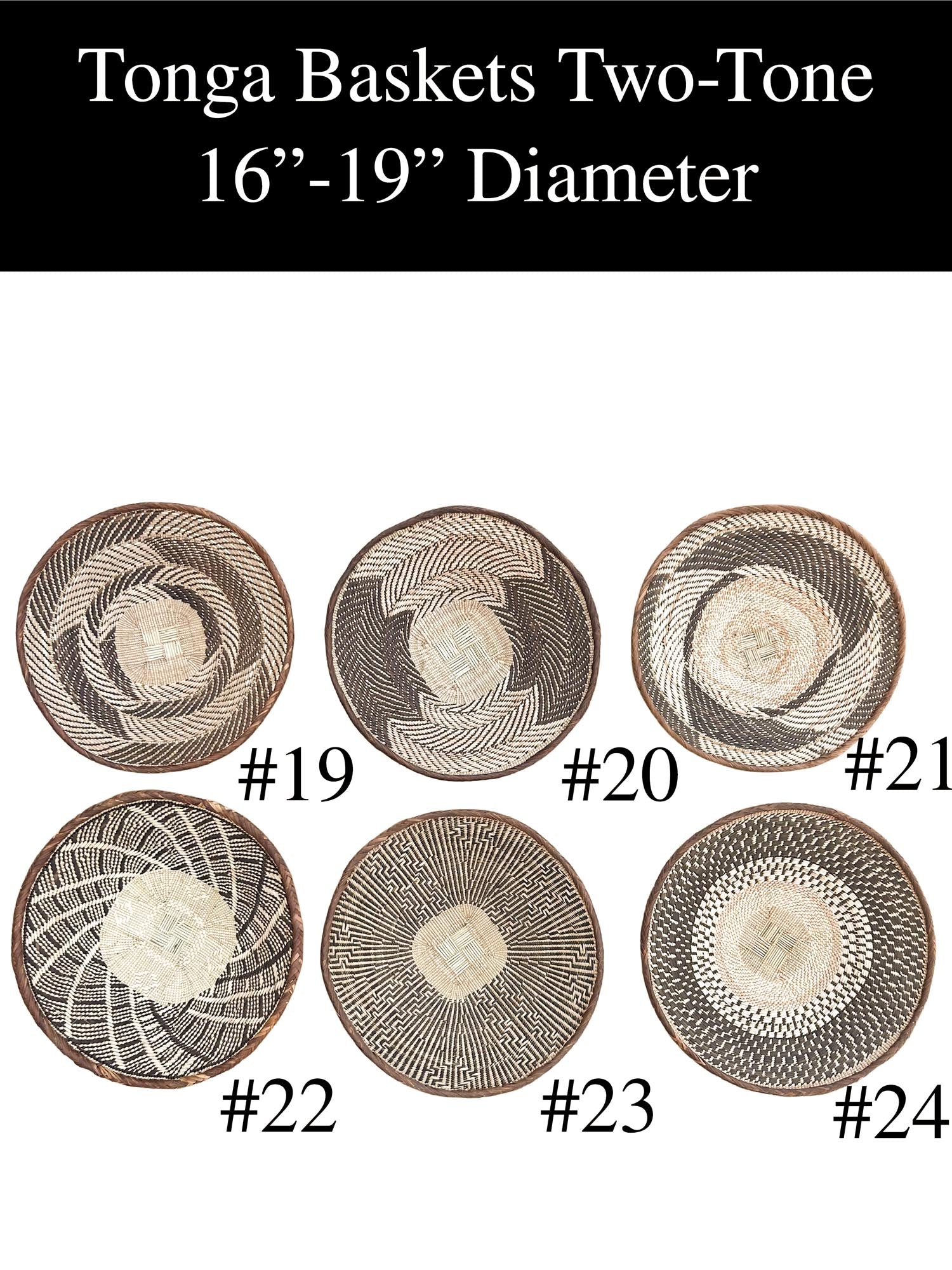 These Two-Tone Tonga Baskets are handwoven with care, providing a perfect blend of traditional and contemporary design. They make for an eye-catching addition to your wall decor.
