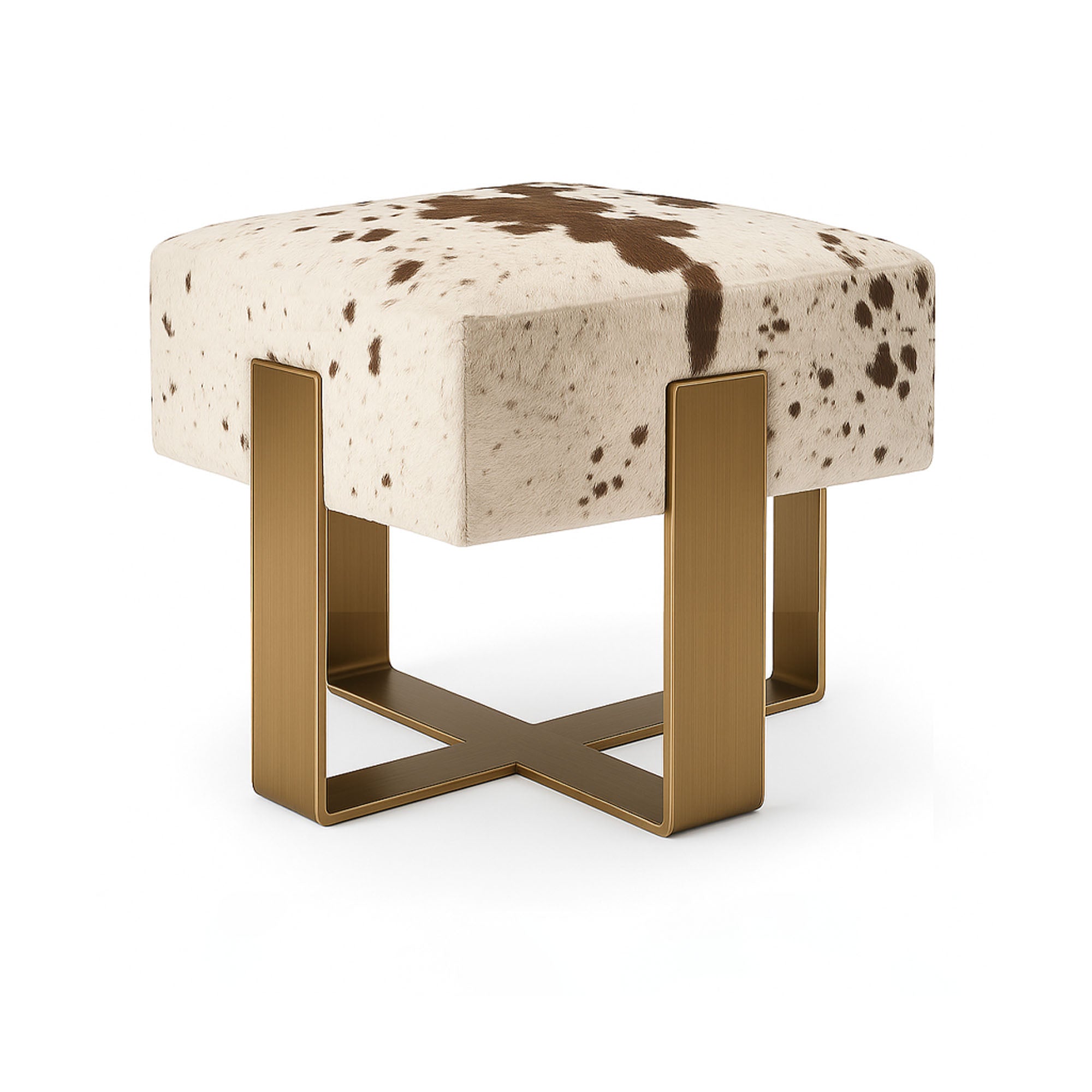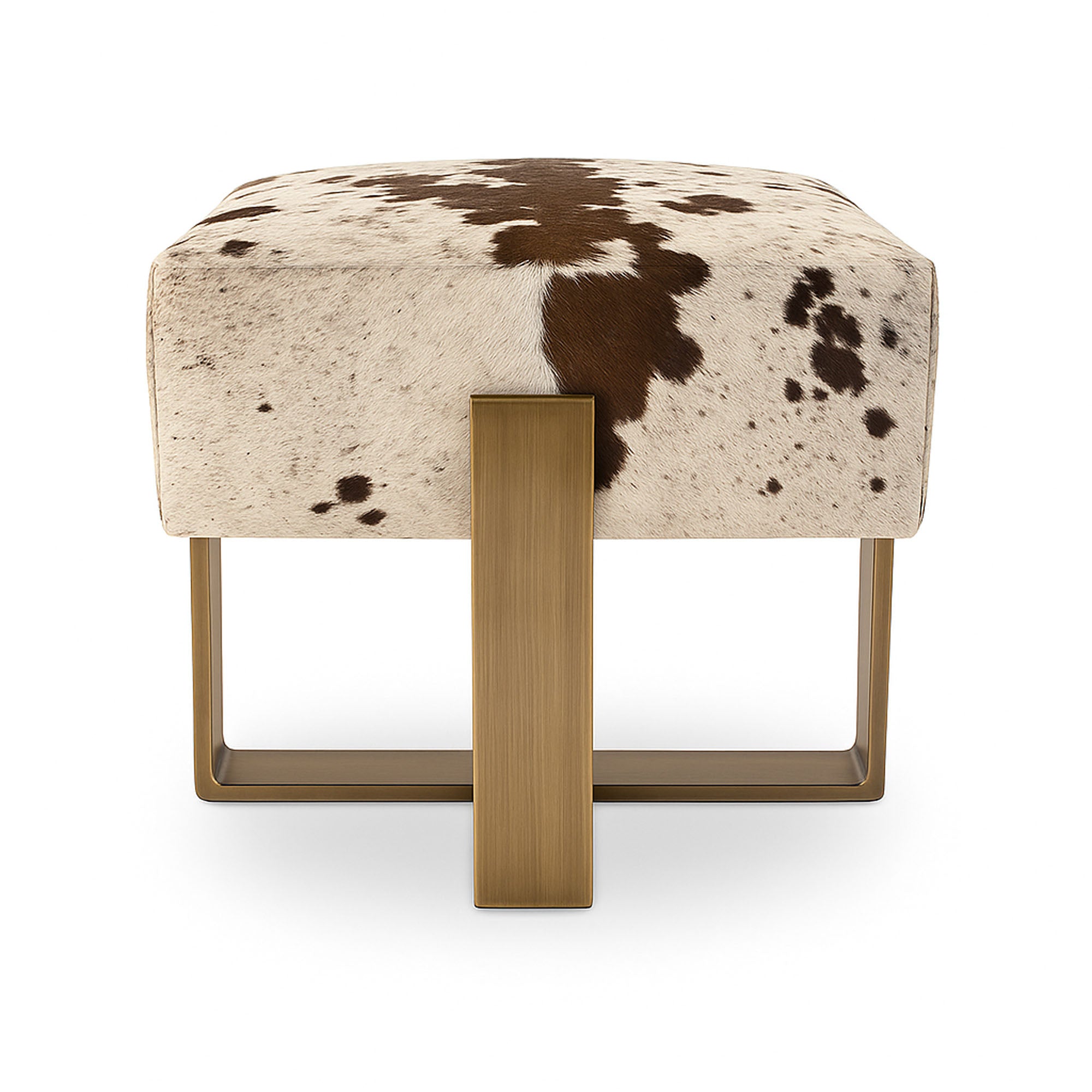 Add a unique touch with the Brown and White Speckle Lorelei Bench in Antique Brass. The speckled cowhide pattern and antique brass frame create a striking combination, making it an eye-catching accent for living rooms or entryways.