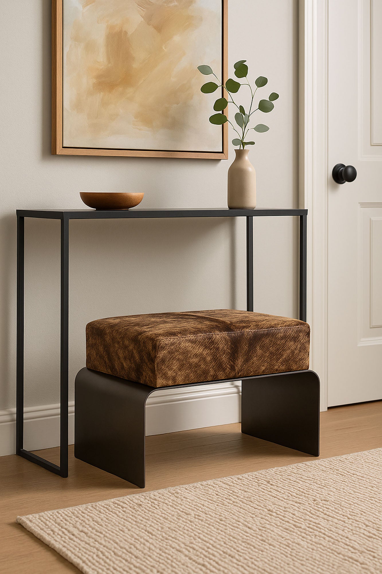 Add modern luxury with the Exotic Brown Cowhide Key West Bench in Black Chrome. The rich brown cowhide brings warmth, while the sleek black chrome frame provides a contemporary edge. Perfect for enhancing living rooms, bedrooms, or entryways.