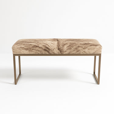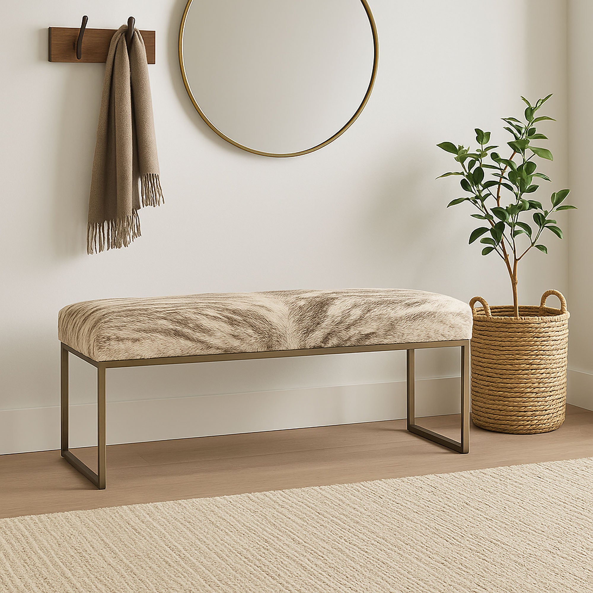Exotic Taupe Cowhide Bench in Dull Nickel