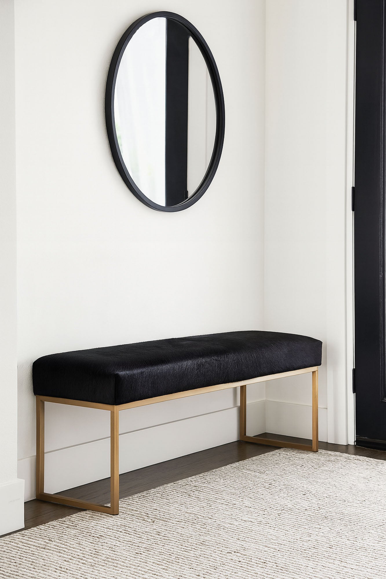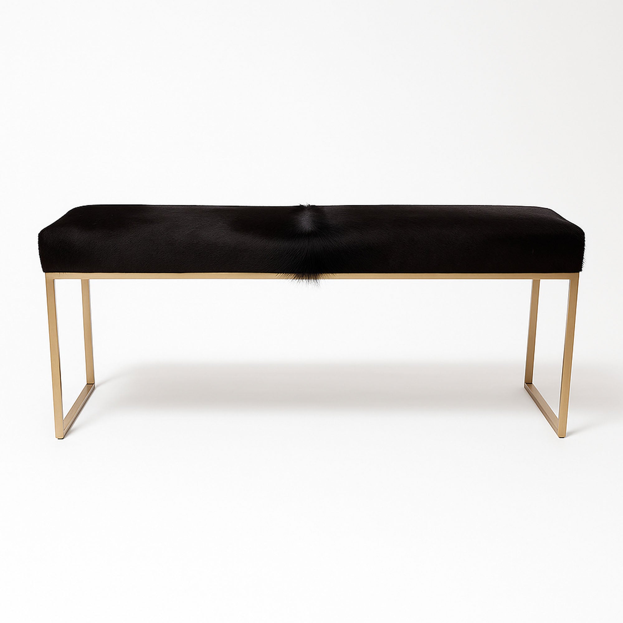 Solid Black Cowhide Bench in Satin Brass