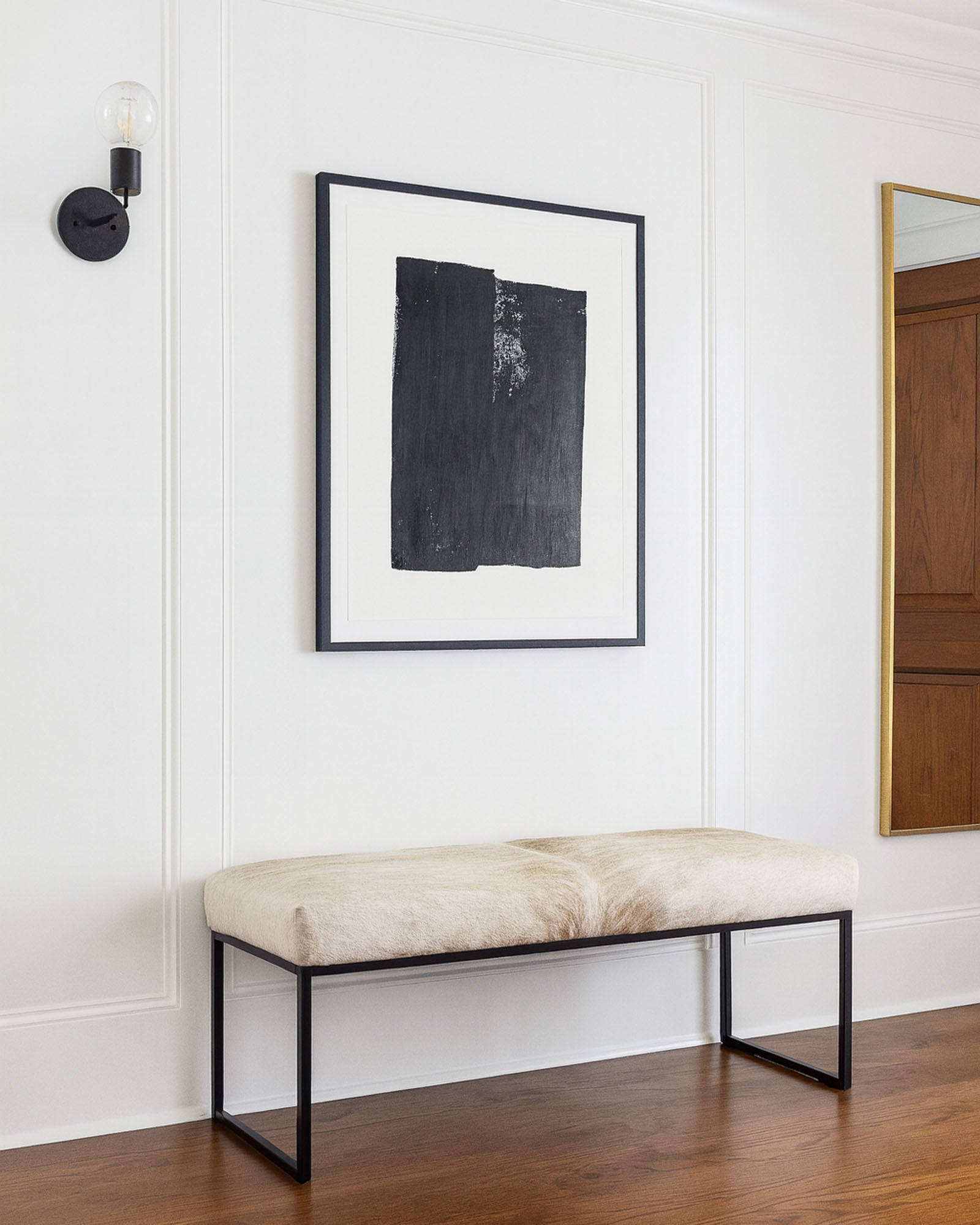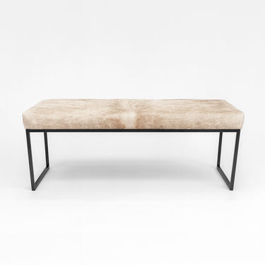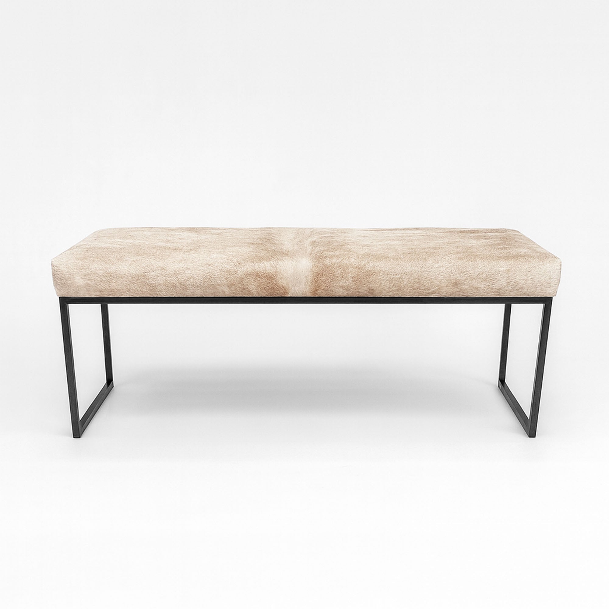 The white speckle cowhide bench is a stunning blend of natural texture and modern sophistication. Upholstered in premium white speckle cowhide, it offers a soft, inviting surface. Paired with a sleek Nordy bronze frame, this bench makes a bold yet elegant statement. Ideal for living rooms, bedrooms, or entryways, it adds warmth and luxury to any decor.