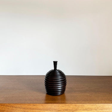 The Rovuma Collection ebony wood vessel, made from African hardwood, is a testament to the skill of Mozambican artisans. Ideal for adding a touch of elegance to any space.