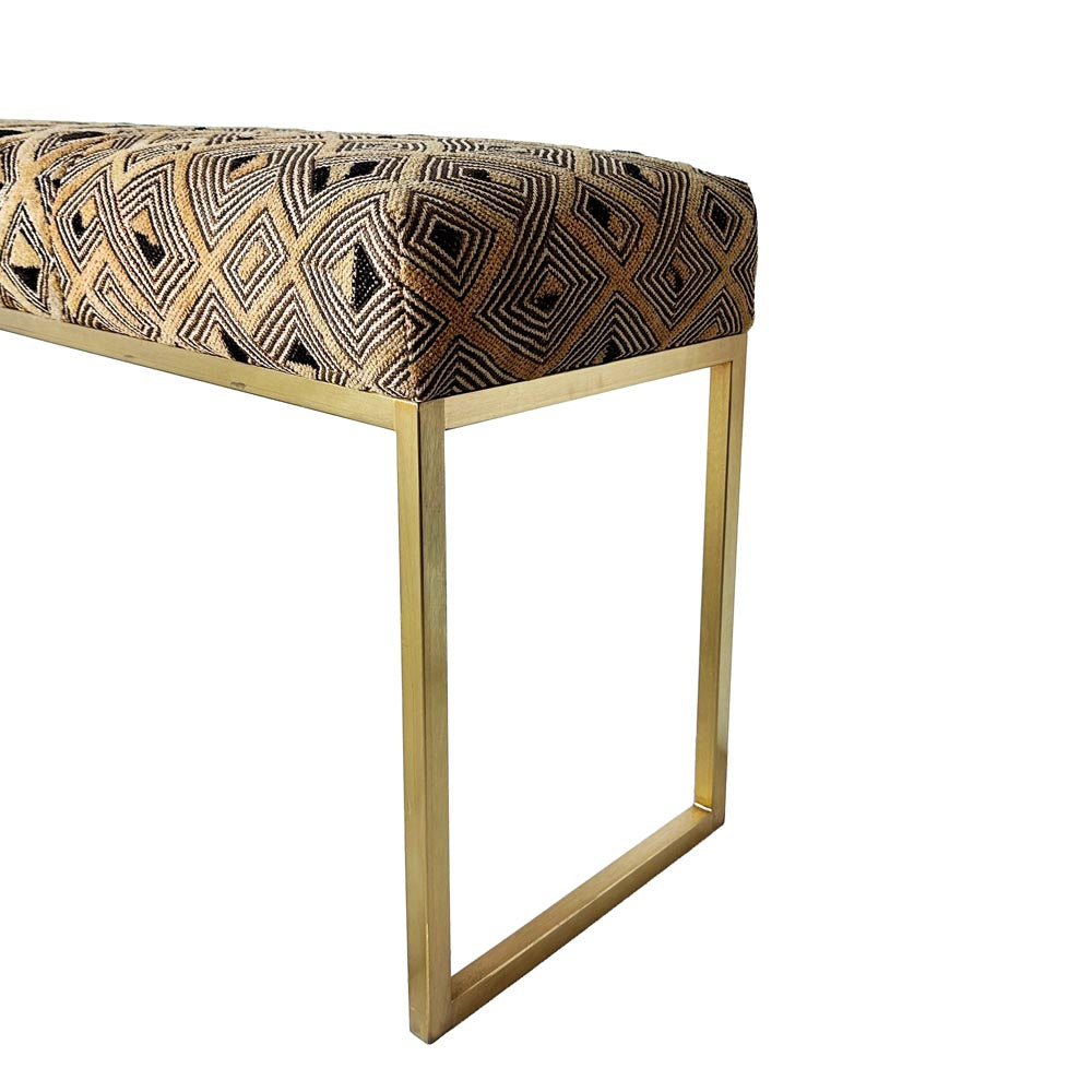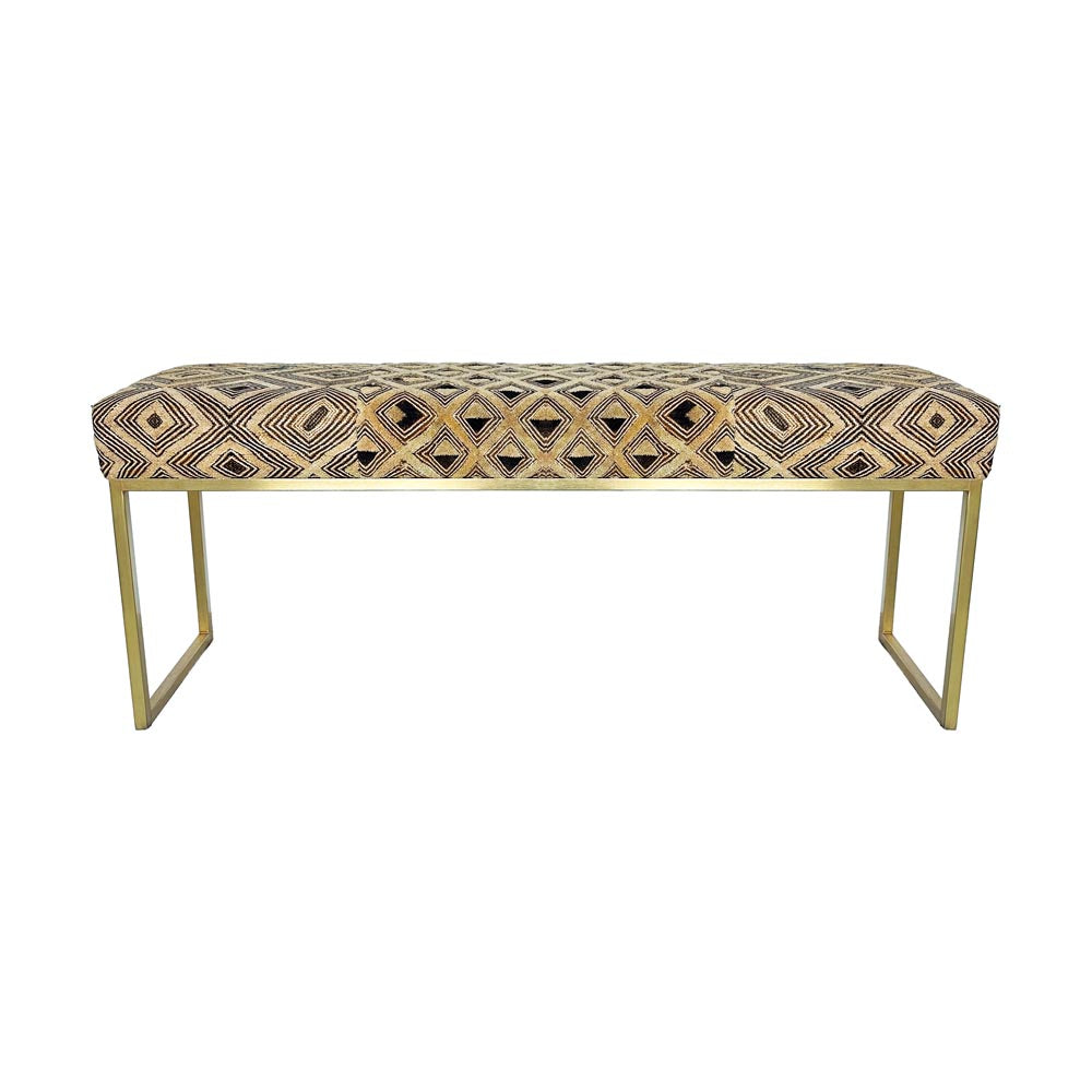 African Kuba Cloth Bench in Satin Brass