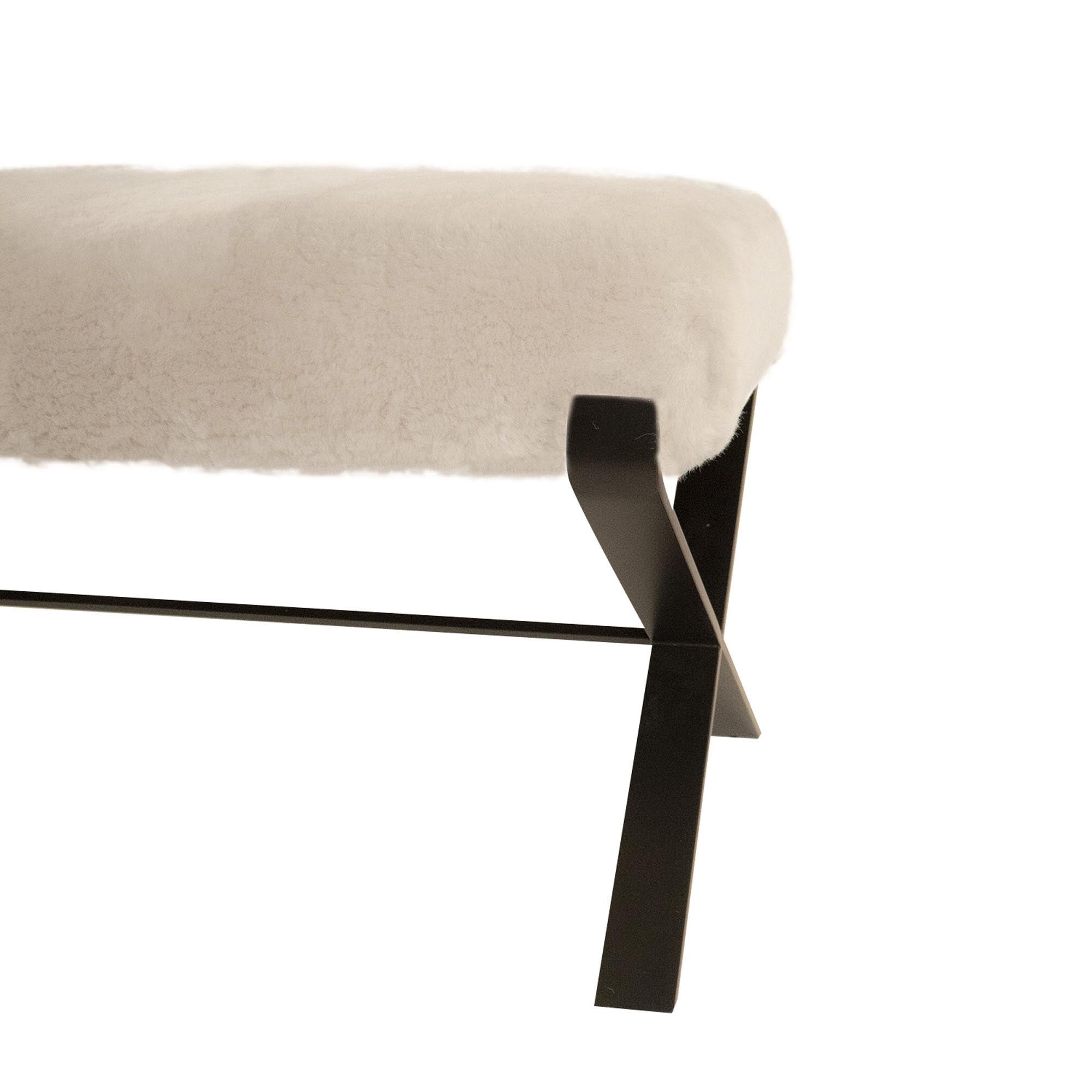 White Shearling Sheepskin Hawadii Bench in Matt Black